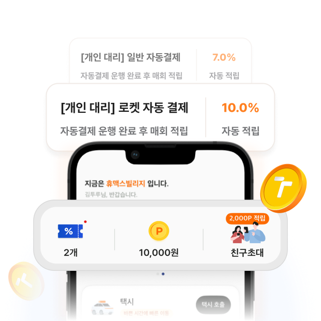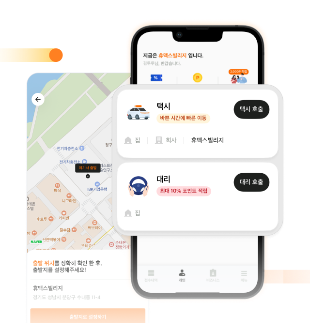 - 개인 고객은 대리 서비스를 이용하면 포인트가 자동 적립되며 적립된 포인트는 택시·대리 호출 시 현금처럼 사용할 수 있습니다.